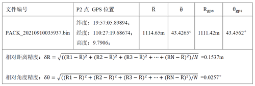 对统计结果进行记录,距离分别为 R1、R2、R3、……、RN,角度分别为θ1、θ2、θ3、……、θN,其距离精度、角度精度结果及GPS记录如图3所示。
